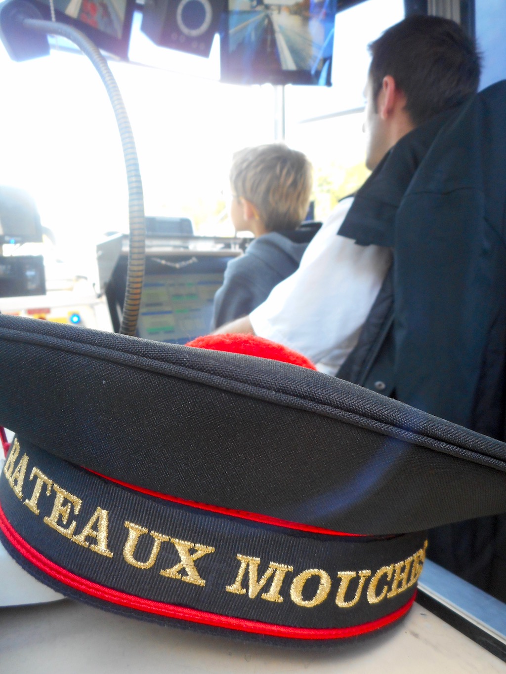 Si pour nous ce n’était pas une découverte, pour Little M. c’était sa toute première fois et l’accomplissement d’un rêve : depuis tout petit il nous tanne pour aller voir la Tour Eiffel et faire une promenade en Bateaux Mouches®… Comme ses désirs sont des ordres, ou presque, nous avons tout fait pour faire de ce week-end un rêve éveillé… C’était sans compter sur la complicité d’Hadrien de La Compagnie des Bateaux Mouches® qui lui avait réservé une jolie surprise : devenir le temps d’une croisière capitaine d’un navire sur la Seine ! Bon en fait pour la sécurité des 1000 touristes embarqués sur la péniche et pour éviter de faire la une des journaux, plutôt qu’endosser seul le rôle du capitaine, Little M a enfilé son costume de mousse et l’espace de quelques instants est devenu le premier Mouch’aillon de l’histoire de la compagnie parisienne…