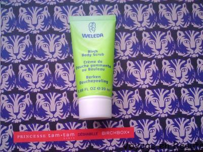 Un gel douche gommant au bouleau de Weleda, pas une découverte non plus, puisque déjà dans ma salle de bain en full size depuis bien longtemps, mais un format pratique pour l’emmener en voyage.