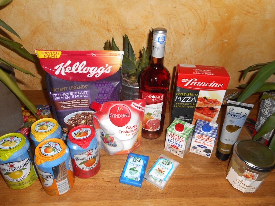 Enfin côté boissons, un top et un flop ! J’étais très contente de découvrir 4 canettes de Sanpellegrino aux fruits, j’avais découvert cette boisson il y a quelques années en Italie et j’en suis fan, à tel point que j’en avais ramenés quelques packs et que j’en fais un stock dès que j’en trouve quelque part, j’en ai même bu en Australie !!! Désormais je vais les trouver à 2 pas de chez moi : happy !