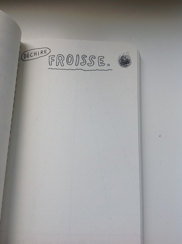 En fait ce petit livre illustré nous incite dès la couverture à le saccager ! Sacrilège pour une amoureuse des livres comme moi, mais dès la première page, le mot saccage prend alors un tout autre sens … je parlerai plutôt de défouloir ou d’anti-stress, certes il y a quelques activités « destructrices » mais tellement amusantes et inspirantes !