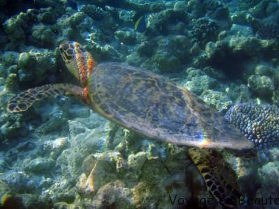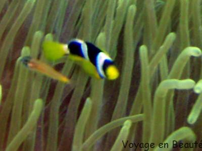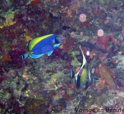 La tête sous l’eau à quelques centimètres de profondeur c’est un véritable aquarium peuplé de poissons multicolores qui nous accompagnent, tortues, petits requins pointes noires, anges, clowns, sergents majors : une faune extraordinaire.