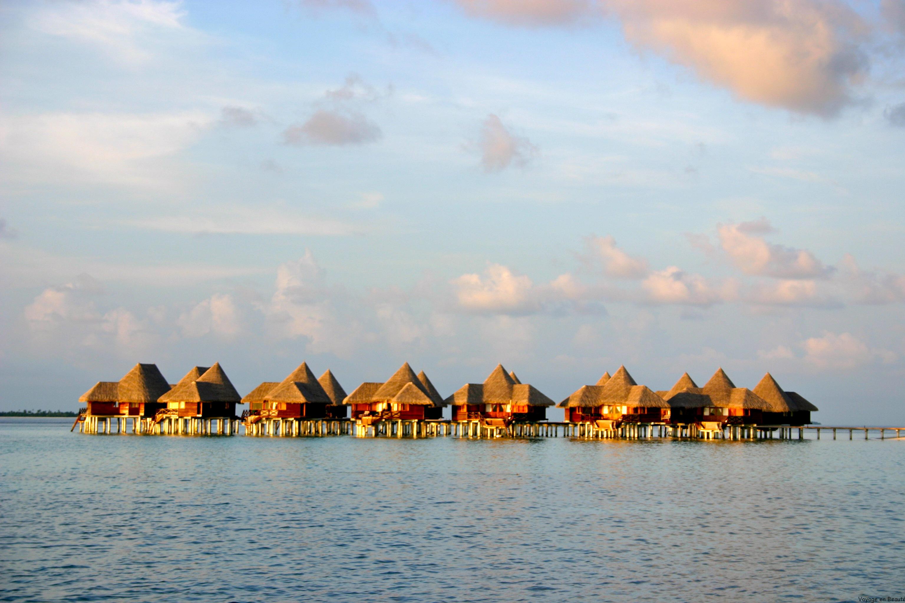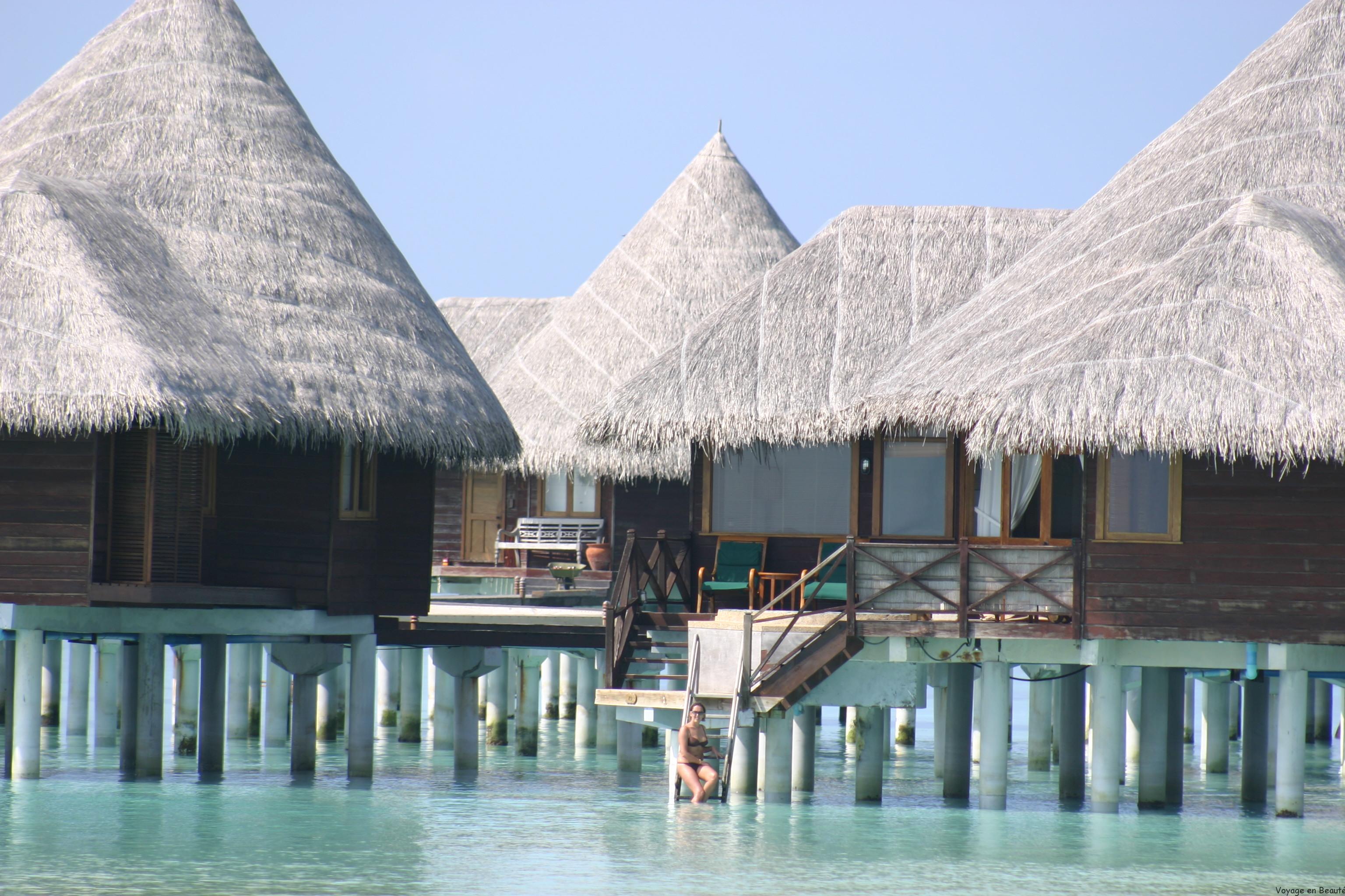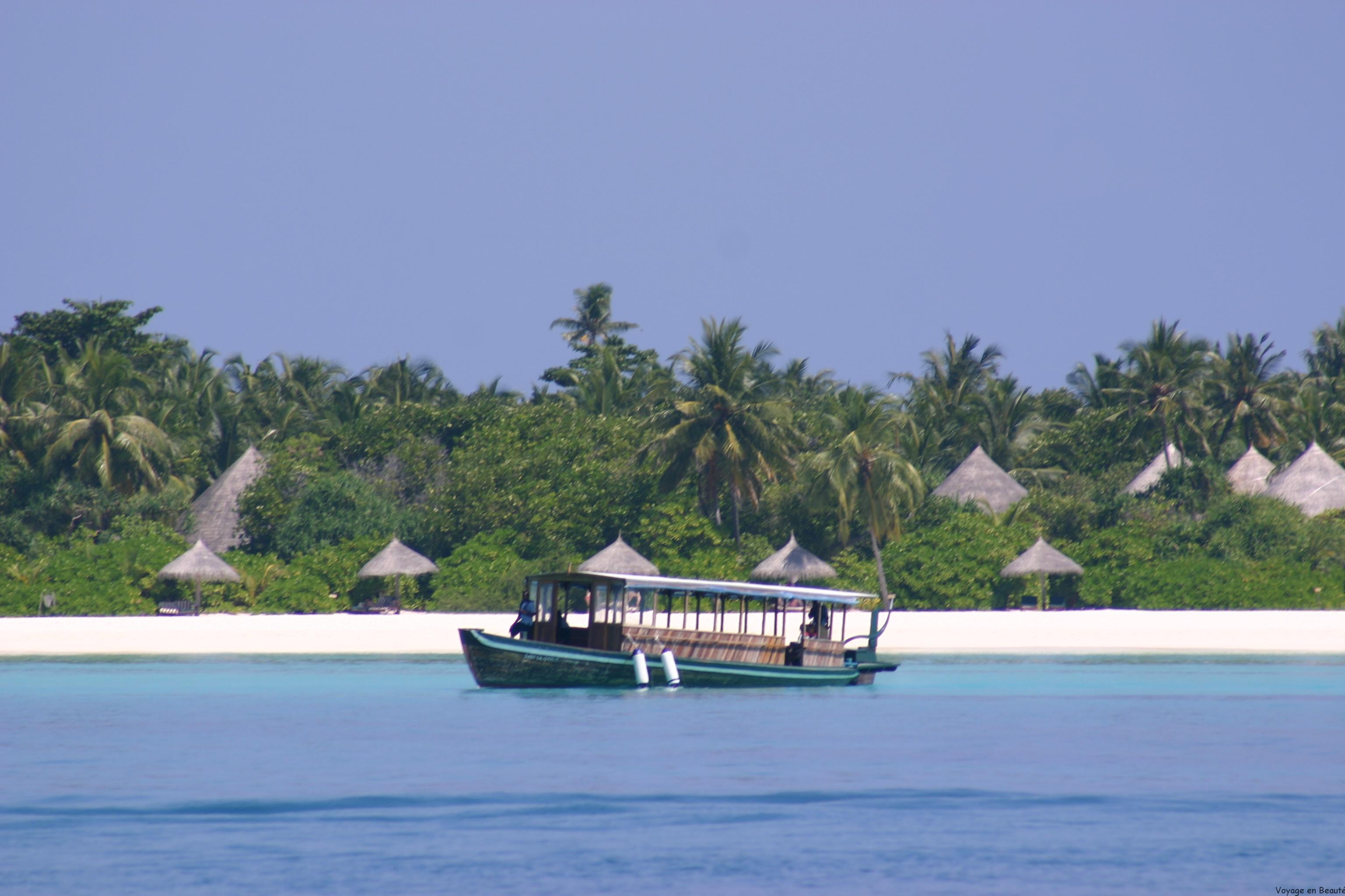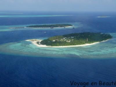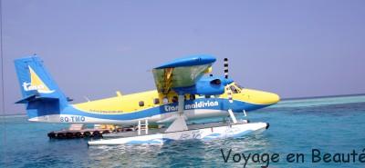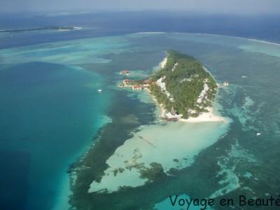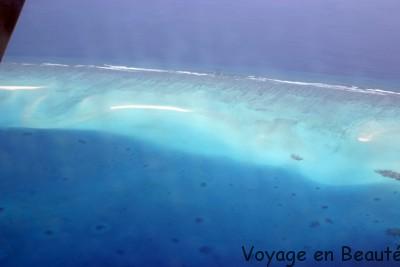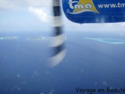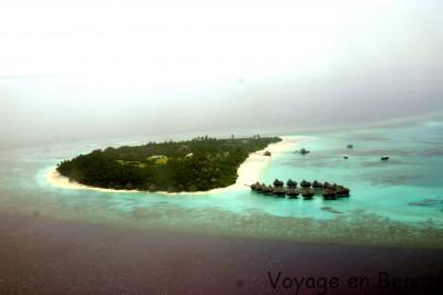 Notre hôtel se situant dans l’atoll de Baa à 30 minutes de Malé, nous avons eu la chance de faire le trajet en hydravion : une demie heure magique à survoler les atolls, admirer les nuances de bleu, deviner les hôtels noyés dans la verdure, un rêve éveillé !