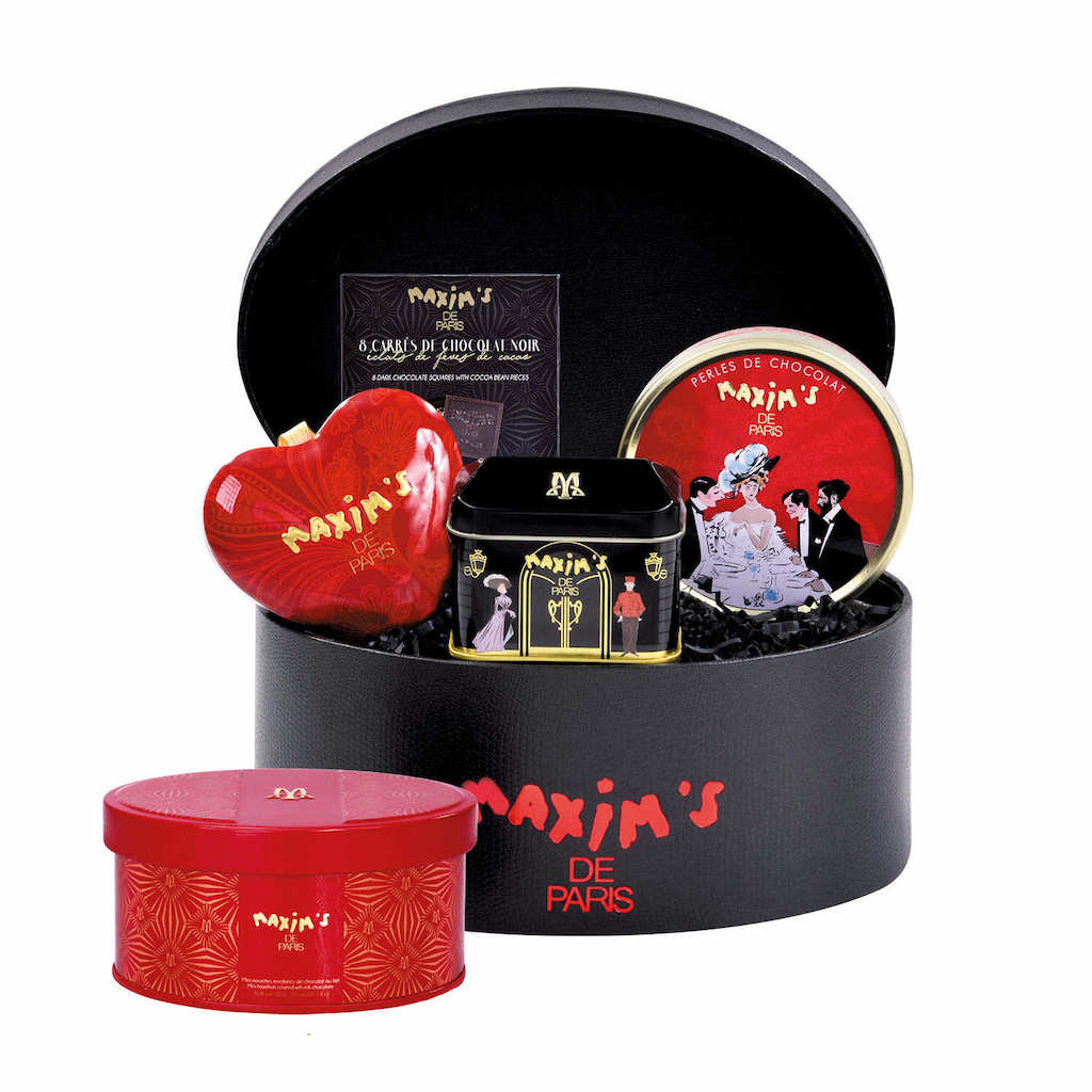En offrant des gourmandises vous ferez plaisir à coup sur… J’aime beaucoup les coffrets concoctés par Bien Manger. Avec notamment ce coffret Champagne qui contient du champagne bien sûr, des biscuits, une boite de foie gras etc. ou ce coffret tout chocolat qui renferme un cœur en chocolat, des perles de chocolats, des noisettes enrobées de chocolat etc. le tout illustré aux couleurs du Paris des années folles !