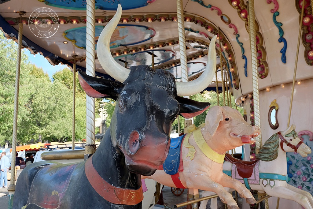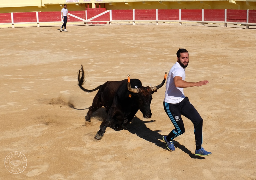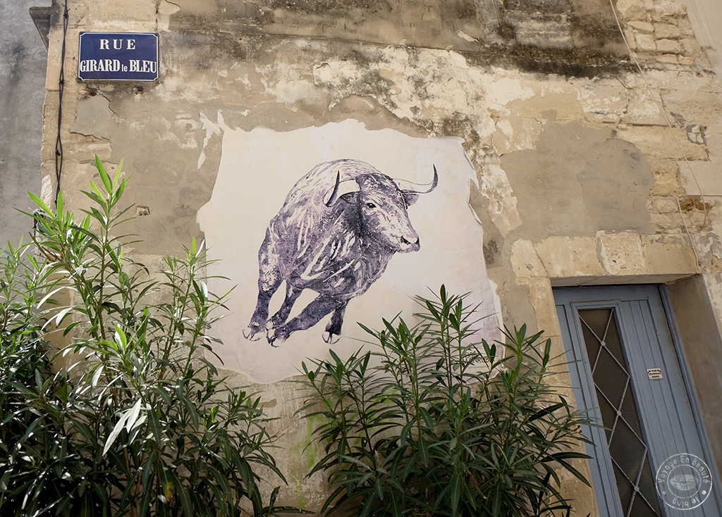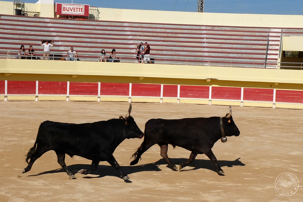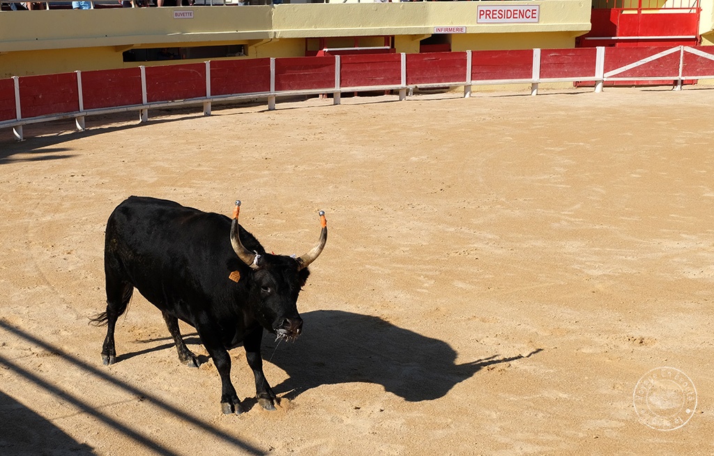 Ici, les taureaux sont partout, en peluche, en peinture murale, dans la rue, même sur le manège d’enfants! Et évidement dans les arènes où nous avons assisté à une course camarguaise : sensations garanties…