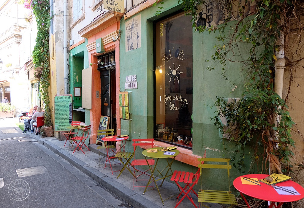 Nous avons dévoré les meilleurs sandwichs qu’il m’ait été donné de manger jusqu’à présent chez Fad’Oli, 42 rue des Arènes, à deux pas de la place du forum et des ses restaurants à touristes, dans une boutique coloré, on nous a servi des légumes assaisonnés à la perfection, basilic, huile d’olive, dans du pain frais et croustillant, un régal ! Nous avons voulu y aller le dimanche midi pour goûter les sushis ( la propriétaire est japonaise) mais c’était hélas fermé… Rien que pour ça,nous sommes obligés d’y retourner !