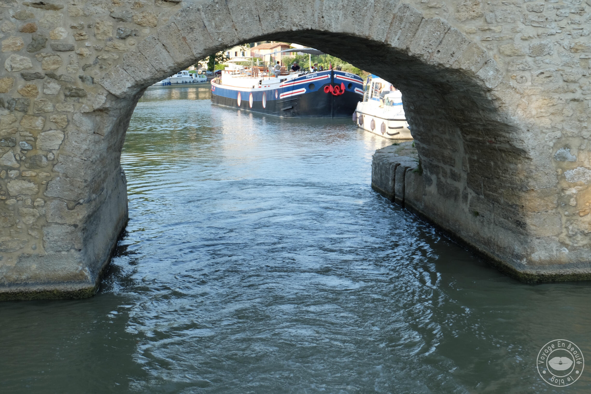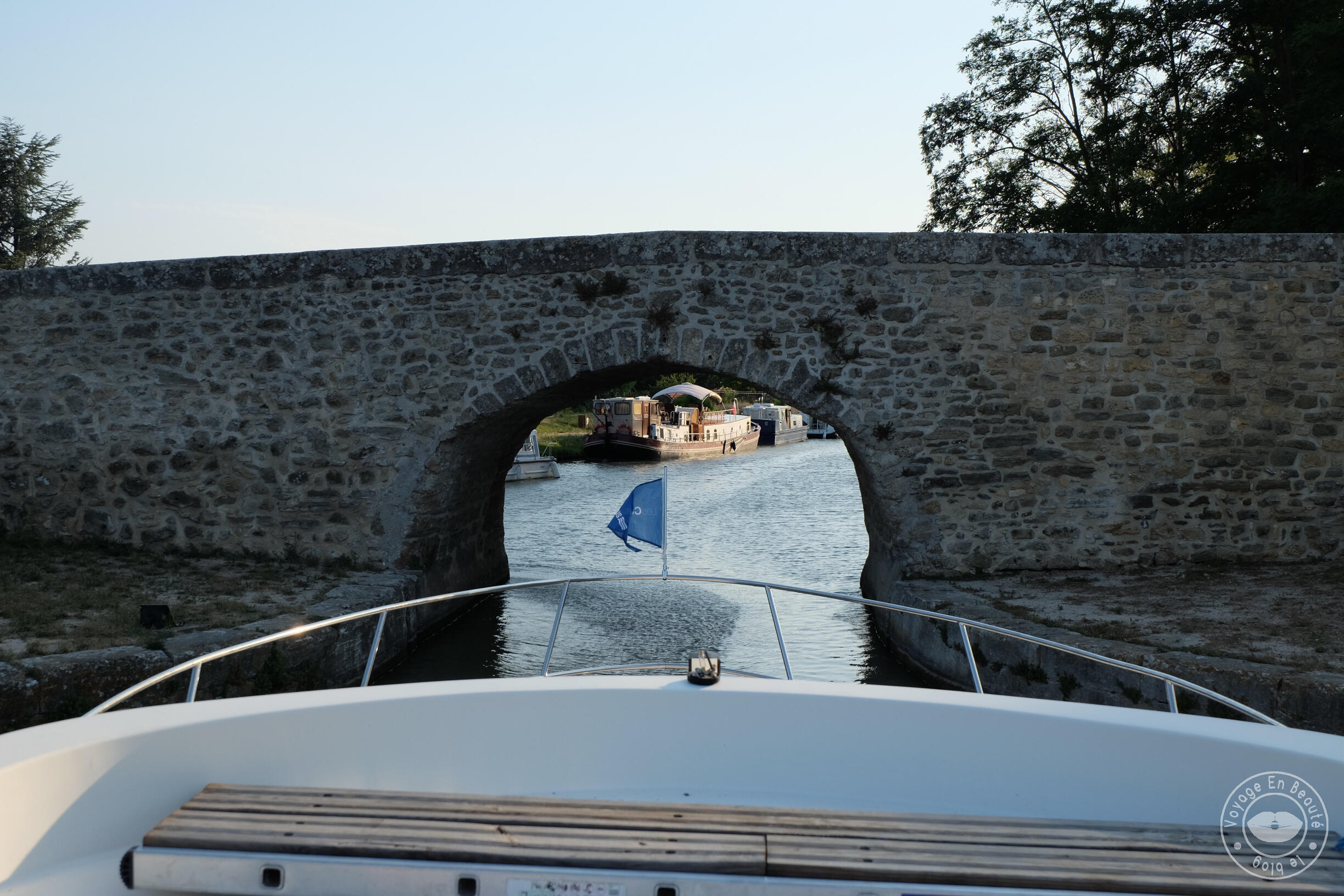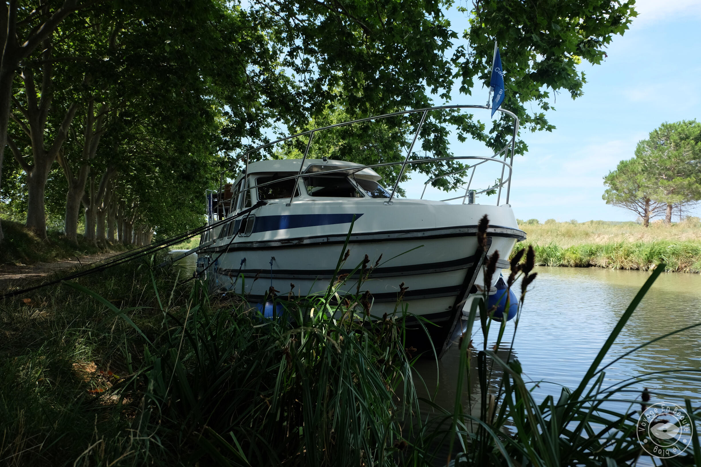 Nous nous sommes rendus le samedi 11 juillet à la base les canalous sur le canal du midi de Colombiers, après les formalités d’usage réglées en moins de temps qu’il n’en faut pour l’écrire, nous avons pris possession de notre bateau : le Margot. Un Tarpon 37 Duo Prestige catégorie premium offrant tout le confort et les commodités dont on pourrait rêver : 2 chambres, 2 salles d’eau, clim, lave-vaisselle, télévision, réfrigérateur-congélateur, plancha, machine à café Nespresso etc. Imaginez un mobil-home tout équipé flottant et vous y êtes !