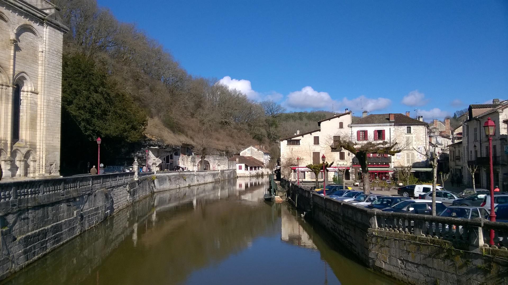 Entourée par la Dronne et la Côle, le centre ville de la cité est en fait une île séparée du reste du village par des ponts et des canaux comme son illustre cousine italienne.