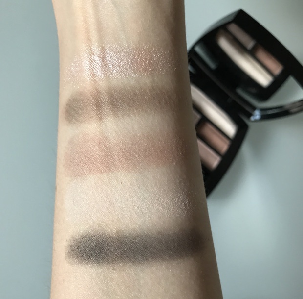 Dans son pochon de velours, le traditionnel boitier noir a laissé sa place à un luxueux écrin au capot beige siglé de l’emblématique double C en noir : avant même de l’ouvrir je suis séduite, c’est tellement beau. Mais l’intérieur n’est pas en reste, on découvre 5 fards naturels, plutôt bien pigmentés et à la tenue suffisante pour la journée. J’aime la facilité d’application et la possibilité de jongler entre les couleurs et les textures pour l’utiliser aussi bien comme fard à paupières, base, eye-liner ou poudre à sourcils.