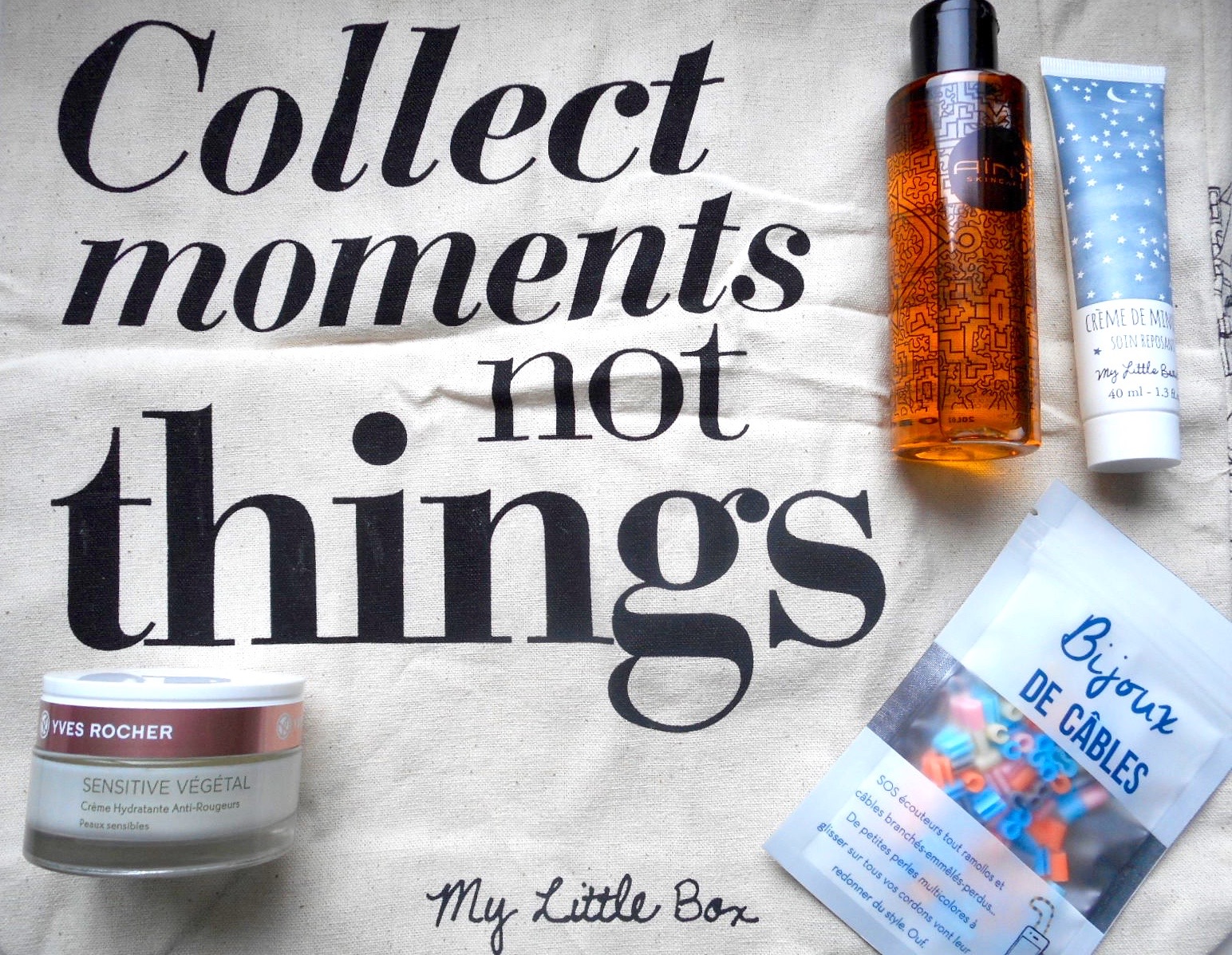 - sensitive végétal Yves Rocher, crème peaux sensibles : je n’ai rien contre Yves Rocher et j’utiliserai probablement ce soin, mais ce n’est clairement pas le type de marque que j’ai envie de découvrir dans une box qui se veut pointue et originale.