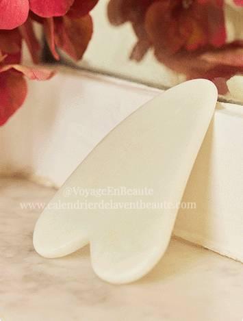 Deuxième goodie un gua sha en pirre pour se masser le visage et optimiser l’action des soins. J’avais déjà un rouleau en jade et même si je ne suis pas archi convaincue par son efficacité, c’est super agréable à utiliser !