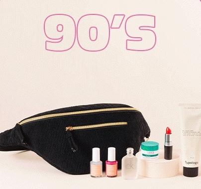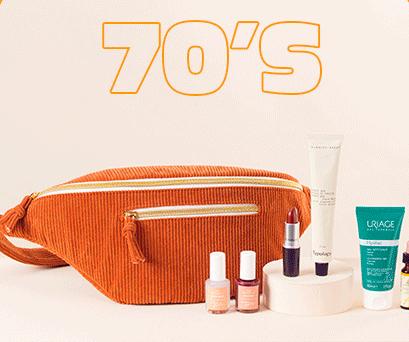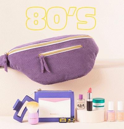 En fonction de la décennie choisie la couleur des accessoires et la sélection de produits de beauté seront amenées à changer. Dans tous les cas nous recevrons toutes 1 sac banane en velours côtelé + 4 accessoires assortis + 6 produits de beauté ! Et comme d’habitude, je vous réserve un super code promo en fin d’article…