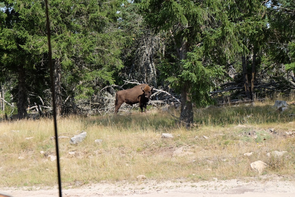 Autre incontournable en famille, la réserve des bisons d’Europe à Sainte Eulalie en Margeride. Après nous être acquittés du droit d’entrée (16€ pour les adultes et 8,50€ pour les enfants /Sans oublier la peluche bison ;-)), Elie, notre guide, nous a fait découvrir le parc et l’histoire des bisons dans sa calèche.