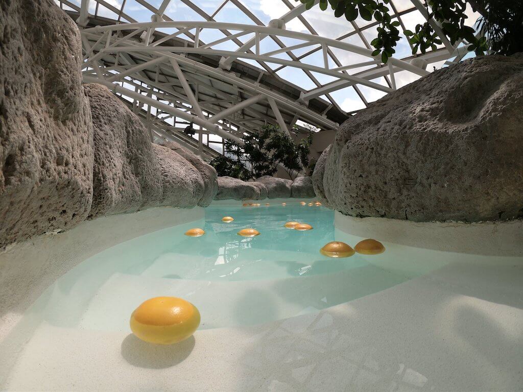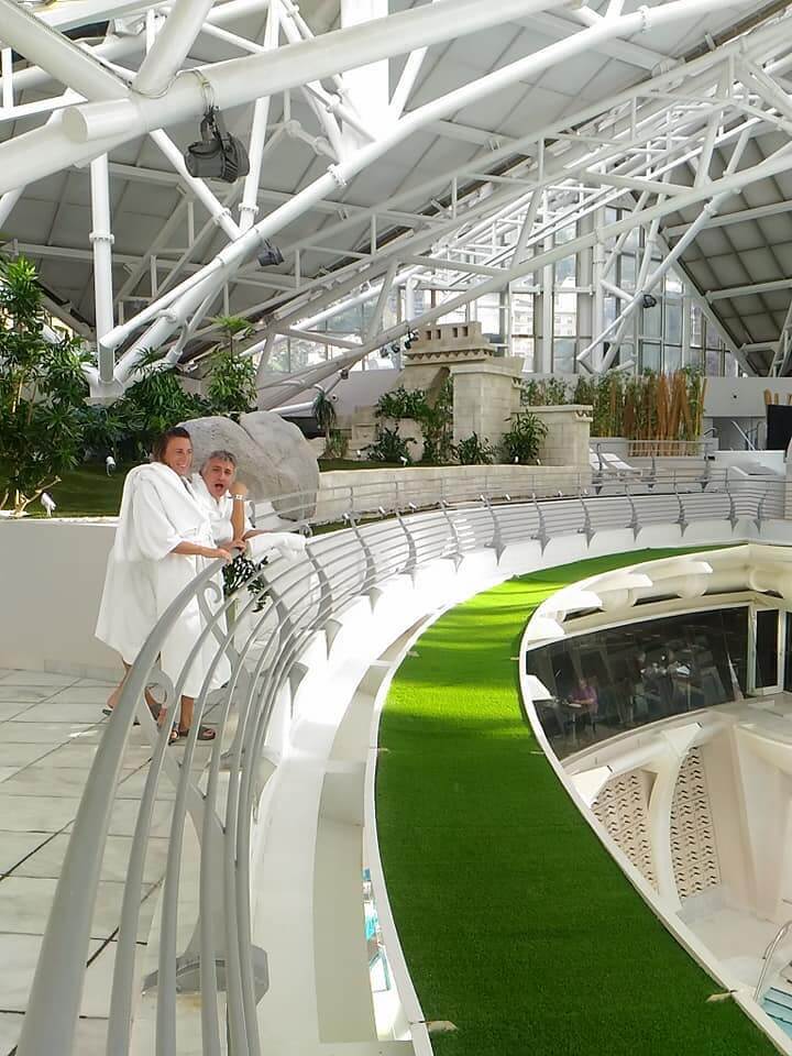 Jusqu’à présent je n’avais profité que de l’espace thermoludique ouvert à tous mais cette année comme nous étions sans enfant, on s’est fait plaisir et on a testé l’espace Inuu exclusivement dédié aux adultes ! Là tout n’est qu’ordre et beauté, luxe, calme et volupté… Pendant plusieurs heures, nous avons déambulé au coeur d’Inuu et profité des lagunes intérieures et extérieures : sièges bouillonnants, cols de cygne, jets massants, sauna, bains chromatiques, bains de pamplemousse, lits à eau, hamacs chauffants etc… On s’est même offert le luxe d’un soin visage et corps pour moi et d’un massage pour Mr T. Une parenthèse enchantée que je vous recommande à 300% !
