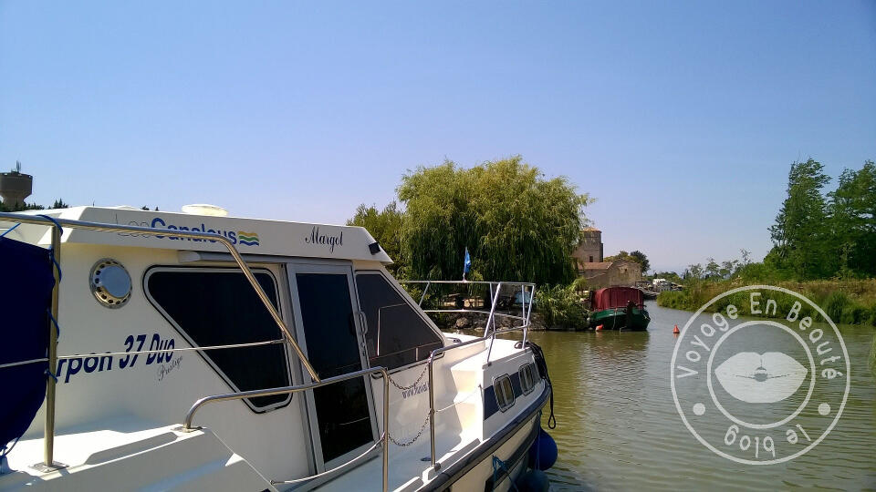 Cette fois-ci, nous avions embarqué dans notre aventure un couple d’amis et leurs filles, plus on est de fous… Vous connaissez l’expression ! Mais surtout on n’est jamais trop nombreux pour manœuvrer une péniche de 13 mètres de long, notamment pour l’amarrer ou passer les écluses… Nous avons pris possession de notre bateau le vendredi en début d’après-midi à la base des Canalous d’Agde, et après une rapide remise à niveau de nos connaissances de navigateurs et notre installation à bord, nous avons pris la route !
