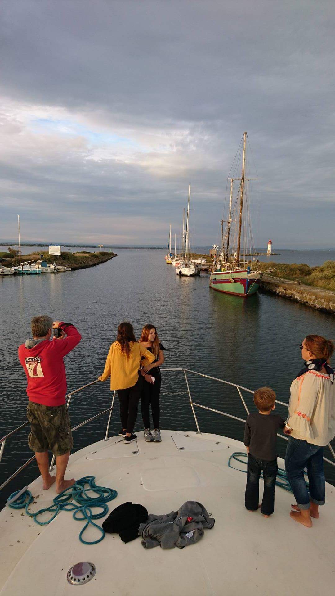 Direction Marseillan pour cette première étape, quelques petites heures de navigation, 3 écluses plus tard et un magnifique coucher de soleil entre mer et étang, nous avons décidé de jeter l’ancre dans l’enceinte même du port de plaisance pour y passer la nuit. Nous aurions très bien pu nous arrêter en pleine nature mais les ados voulaient une connexion WI-FI et nous avions envie d’un bon plateau de fruits de mer, dont acte !