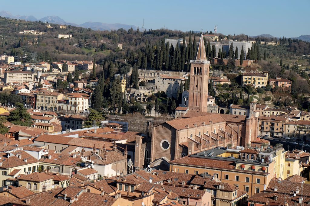 Accessible par un porche depuis la piazza Erbe, la piazza dei Signori où trône la statue de Dante est surplombée par la Torre dei Lamberti. Après avoir gravi les 368 marches qui nous mènent au sommet (bon en fait on a pris l’ascenseur !) nous avons pu profiter d’un magnifique panorama sur les toits et monuments de la ville.